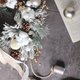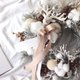 ● Embellishments: Velour ribbon and beige plush balls paired with mini golden berries create a winter wonderland palette. The floral artist meticulously arranges all decorative details according to the color scheme.