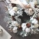 Each piece is thoughtfully designed by our floral artists, who will select and arrange accessories and floral elements based on the color palette or style presented for each item. If you particularly favor a specific ornament or detail, we welcome you to discuss it with us for a personalized custom order. In the event of a stockout of a particular accessory, we will notify you before shipping for a substitution.