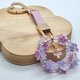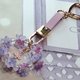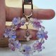 - Amethyst Purple Leather Double-Buckle Heart Keychain with Two-Tone Purple Murano Glass Cherry Blossoms and Austrian Crystals