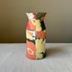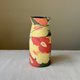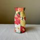 The slab-built porcelain vase is inspired by elegant zinnia flowers.