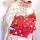 Red Polka Dot Cat Hanhaba Belt, Red Half-Width Obi for Yukata/Komon Kimono/Casual Kimono, Double Sided Obi