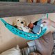 Hammock size on the photo: brown, blue hammock - length 20 inches, width 11 inches. White hammock - length 18 inches, width 10 inches slightly stretched by weight. I recommend hanging the hooks at a distance of 19,2-24 inches.