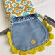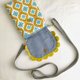 Materials: Pure cotton floral fabric, blue-grey slub yarn cotton, grassy green watercolor dotty print, light blue quilted cotton, grey webbing, gold clasp, gold magnetic snap, YKK metal zipper.