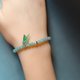 - The crystal-clear ice-jade blue water jade beads exude a calm and pure aura, complemented by a leaf charm symbolizing vitality and protection, showcasing a subtle yet distinctive charm.