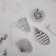 - เซตที่รองแก้ว Black seashell collection 4 ชิ้น 4 แบบ วาดและปักด้วยมือ บนผ้าฝ้าย 100% Natural cotton ไม่ผ่านการย้อม