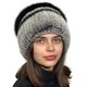 Women's Knit Fur Hat Made of Natural Rabbit Fur with a Fox Fur Pom-Pom and a Rabbit Fur Dragonfly Applique with Rhinestones and Gemstones