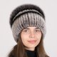 - Women's Knit Fur Hat Made of Natural Rabbit Fur with a Fox Fur Pom-Pom and a Rabbit Fur Dragonfly Applique with Rhinestones and Gemstones This stylish and elegant women's hat is made from natural rabbit fur, providing incredible softness and warmth for cold weather.