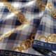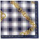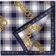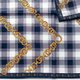 - ผ้าพันคอวินเทจ ผลิตจากผ้าฝ้ายทอคุณภาพดี เนื้อผ้าน้ำหนักเบา ลายพิมพ์สวยงามด้วยเครื่องประดับโซ่ทองบนลายสก๊อตสีฟ้า