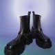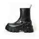 - These shoes feature Black calfskin. The upper is a zip-up boot with a front zipper, lending the shoes an overall minimalist aesthetic. The sole is a functional, sawtooth platform, complemented by a detachable strap accessory. The overall style is one of refined athletic prowess. Perfect for everyday wear, they are both cute and cool.