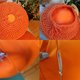 มีสายดึงที่ด้านล่างของ pouf เพื่อให้การถักฟรีจากด้ายยืน สำหรับการซัก