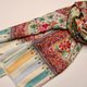 India's famous printing and dyeing process is combined with hand embroidery. The entire shawl is decorated with beautiful and complex printing and dyeing patterns, and then embroidered with various colored embroidery Embroidery thread wrapped around the pattern frame. The color-matched piano edge below is also one of the charms of Leikani. You can feel the colorful and exquisite handwork. The charm, you can appreciate the full details of two traditional crafts at one time, it is worth collecting