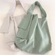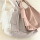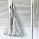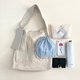 - We used cotton/hemp canvas fabric and created a sub-bag with a ribbon on the side. The ribbon is in a simple tassel shape, casually arranged on the side to be a focal point. The one-handle handle gives a clean impression.