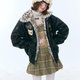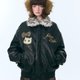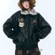 - ziziFei Autumn/Winter Collection: American Retro Design-Inspired Faux Fur Collar, Thickened Leopard Print Plush, Black PU Leather Jacket for Women