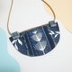This denim necklace is a unique piece of jewelry. Blue jeans always remain on the catwalk in one form or another. This recycled denim necklace highlights the beauty of denim and is a fine example of sustainable fashion. Unique, eco-friendly, hand sewn, recycled and handmade with love, this necklace protects our planet by using reused materials.