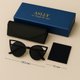 Handcrafted sapphire-foil premium eyewear box, denim-texture folding glasses case, ultra-fine microfiber cleaning cloth.