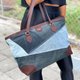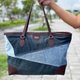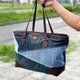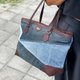 From BOLTON Leather Studio: An Exclusive Design. Made with imported Japanese denim. This tote features a two-tone patchwork design with cowhide straps and a spacious interior capable of holding A4 documents. It's both durable and stylish.