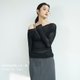 | Long-Sleeved Sheer Top - Asymmetrical Collar | Size Chart >>>