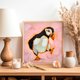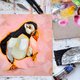 - พัฟฟินภาพวาดสีน้ำมันนกศิลปะเดิมสัตว์ผนังศิลปะตกแต่งงานศิลปะเพนกวิน