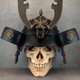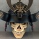 - The “Samurai Skull” wall décor piece (in a natural bone tone) is crafted from PLA plastic and hand-painted with acrylic paints and protective varnishes.