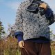- A Cotton jacquard with circular swirl pattern B Imported American denim fabric with white floral print / 100% Cotton Interior: Quilted with blue cotton