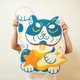 This Maneki-neko, with its right paw raised, beckons blessings from afar.