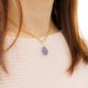 The chain is crafted from surgical stainless steel, its gentle gold tone elegantly complementing the stone's deep blue.