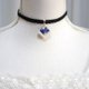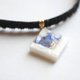 จี้ชิ้นนี้มีความสง่างามด้วยพื้นหลังสีน้ำเงินเข้มข้น ประดับดอกไม้และไข่มุก พร้อมกลิตเตอร์และเส้นสีขาว รูปทรงสี่เหลี่ยมที่คมชัดช่วยทำให้ช่วงคอดูเพรียว สีน้ำเงินกรมท่าเข้มเหมาะอย่างยิ่งสำหรับฤดูใบไม้ร่วงและฤดูหนาว