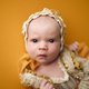 - Introducing our charming baby girl bodysuit perfect for newborn photo sessions. Crafted from soft knit fabric and adorned with delicate vintage lace, this piece is both stylish and comfortable. Complement the look with a matching mustard-colored bonnet embellished with wooden beads. Ideal for capturing precious moments of your little one’s first days.