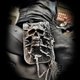 This motorcycle belt pouch is handmade from thick vegetable-tanned leather and finished with 3D skulls, bullets and protective metal motifs for a bold, hard-edged look – perfect for riders, rock fans and anyone who loves dark details.