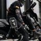 - Olderjunker | Motorcycle belt pouch handcrafted from thick vegetable-tanned leather. Worn on your belt to carry your phone, wallet and daily essentials, with customizable leather color, distressing, stitching, hardware and engraving – made for bikers and dark-style outfits.