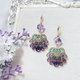 These earrings feature carefully selected **amethyst, known as a gemstone for wisdom**, complemented by a **Rhinestone** design.