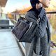 This shoulder bag draws the eye with its chic grayish-navy fur pocket.