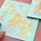 The delicate and unique lake green pearlescent paper, combined with the lively, leaping embossed horse design, seems to spring right off the page.