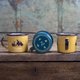 - Polish designer Jordi Trias has created a series of enamel mugs in a natural, scenic style. The front of the mug features a mountain motif, complemented by a striking blue and yellow color combination. The base includes a compass rose with charming icons of a tent, flame, and tree. Let this mountain-inspired enamel mug accompany you on your journey to discover the beauty of life!