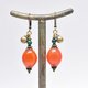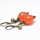 - Orange Ethiopian cherry, malachite and ethnic bell earrings