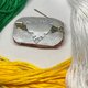 . Materials: Embroidery thread, synthetic leather, pin backing