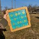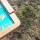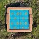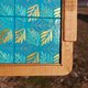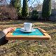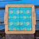 - small turquoise wood square tray decorated with 4 wood tiles which are handpainted with acryl