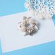 ไข่มุกสีขาวดูเหมือนจะเอ่อล้นออกมาจากระหว่างใบไม้และดอกไม้^^ เราจัดวางไข่มุก Swarovski ที่มีรูปทรงกลมสวยงามและไม่บิดเบี้ยว ขนาดเล็กใหญ่แตกต่างกันไป