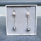 - “925 sterling silver dual pearls design. Classic elegant pendular dangle style. Genuine natural ash gray Tahitian south sea pearls with mirror luster white freshwater pearls.”