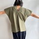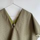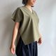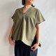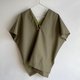 This pullover blouse has a neat impression made of KIMONO fabric used vertically. The narrow fabric sewn at the center of the body is opened at the top to form a slightly deeper V-neckline. The neckline is lined with soft cotton.