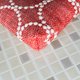 The base fabric features a herringbone weave of red and white threads.
