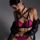 Vibrant and daring lingerie set made of lace and mesh with straps.