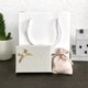 The included jewelry box is made from recycled paper. It's a stylish box that aligns with our commitment to the environment, perfect for gifting.