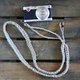 A simple hand strap made from braided hemp cord, accented with a wooden bead.