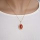 At its heart is a smooth, oval-shaped Nanhong gemstone, sourced from Southern China. It carries that deep, hearty red color Nanhong is known for—so rich and warm. I've carefully wrapped it by hand and surrounded it with gleaming pearls made of crystal, which catch the light softly.