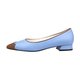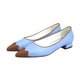 - Inspired by chocolate fondue, flat shoes with a 2 cm heel in a beautiful combination of blue and brown colors.