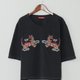 A T-shirt with a vintage, pre-worn finish and a striking tiger embroidery design. Its cropped length and relaxed silhouette make it perfect for layering. The five-quarter sleeves allow for year-round wear, and the 100% cotton fabric is resistant to deformation, offering both comfort and practicality.