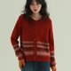 - Crafted from a soft, yielding knit, this sweater feels as gentle as brushed wool against the skin. It's substantial yet light, ensuring no itchiness even when worn directly against the body. The relaxed silhouette offers a forgiving fit, allowing for effortless movement whether you're going about your day or reaching for something. It embodies a sense of laid-back ease. Intricate snowflake and ethnic patterns are woven into the fabric, evoking the landscapes encountered on a nomadic journey.