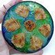 - Wooden Flower wall hanging. Made of precious maple burl wood, walnut slice and crystal resin, with alcohol ink painting.