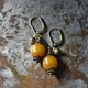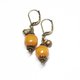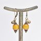 These earrings feature two-tone amber African amber beads connected to ethnic bells.